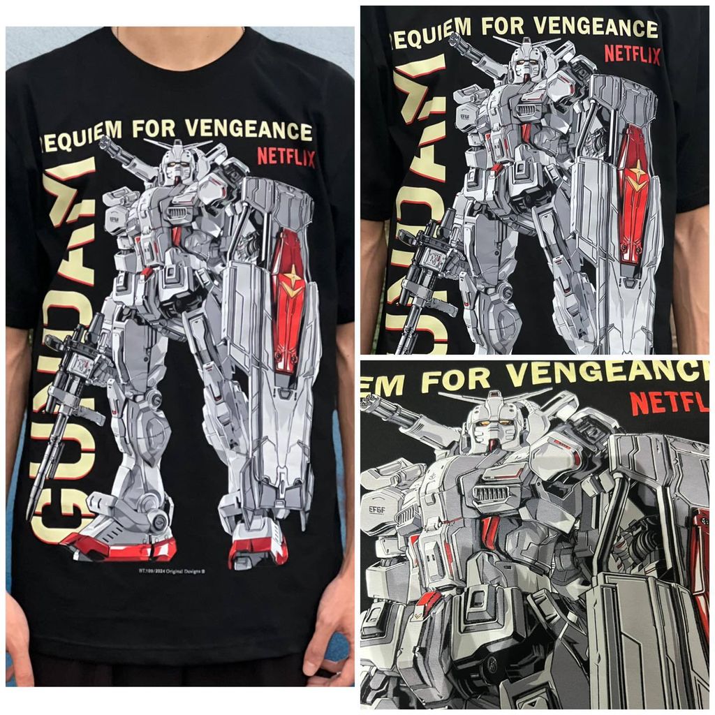 BT199 GUNDAM NETFLIX REGUIEM FOR VENGEANCE MOBILE SUIT JAPAN ANIME MECH GUNPLA ART ORIGINAL BLACK TIMBER COTTON T-SHIRT