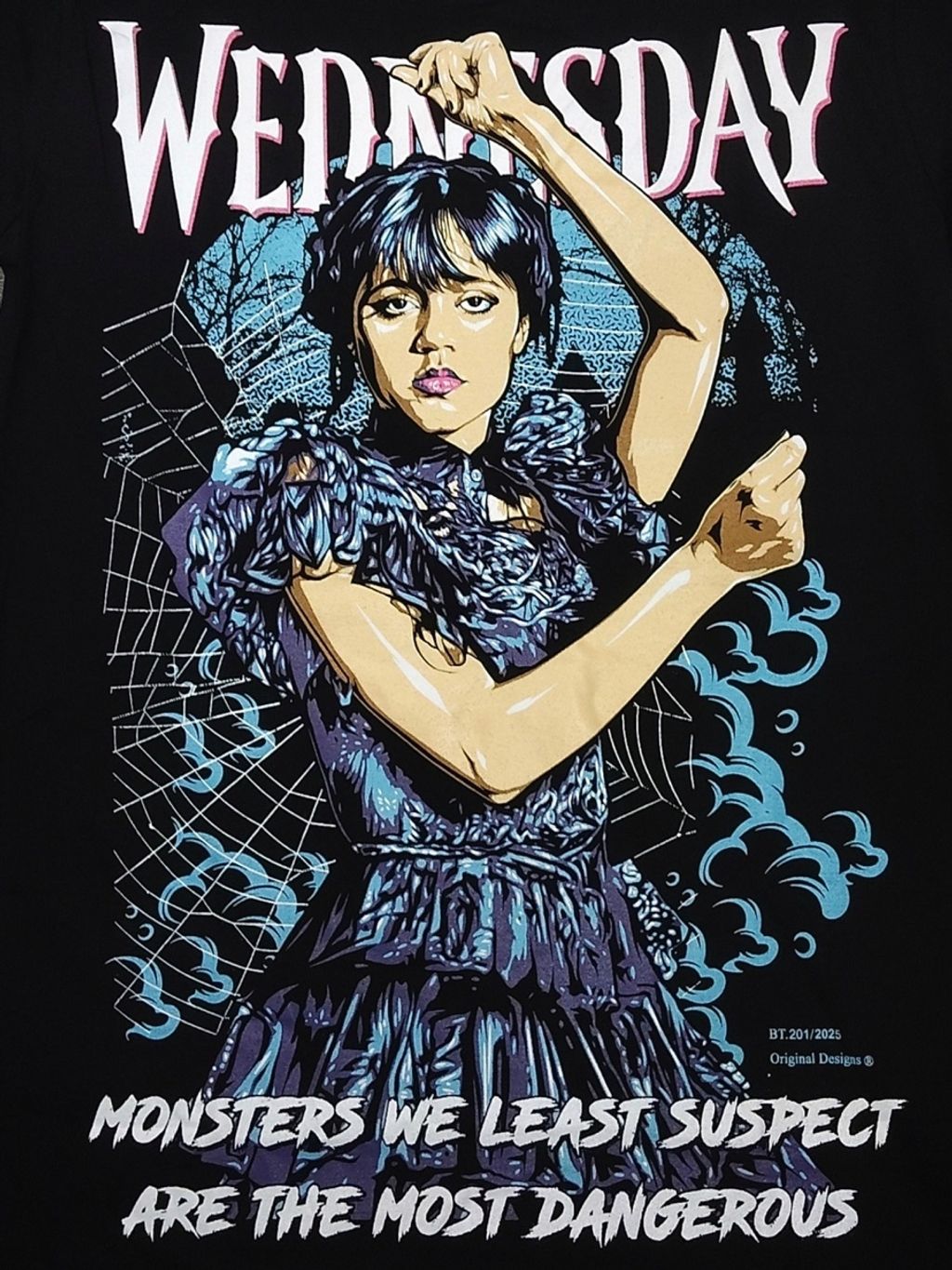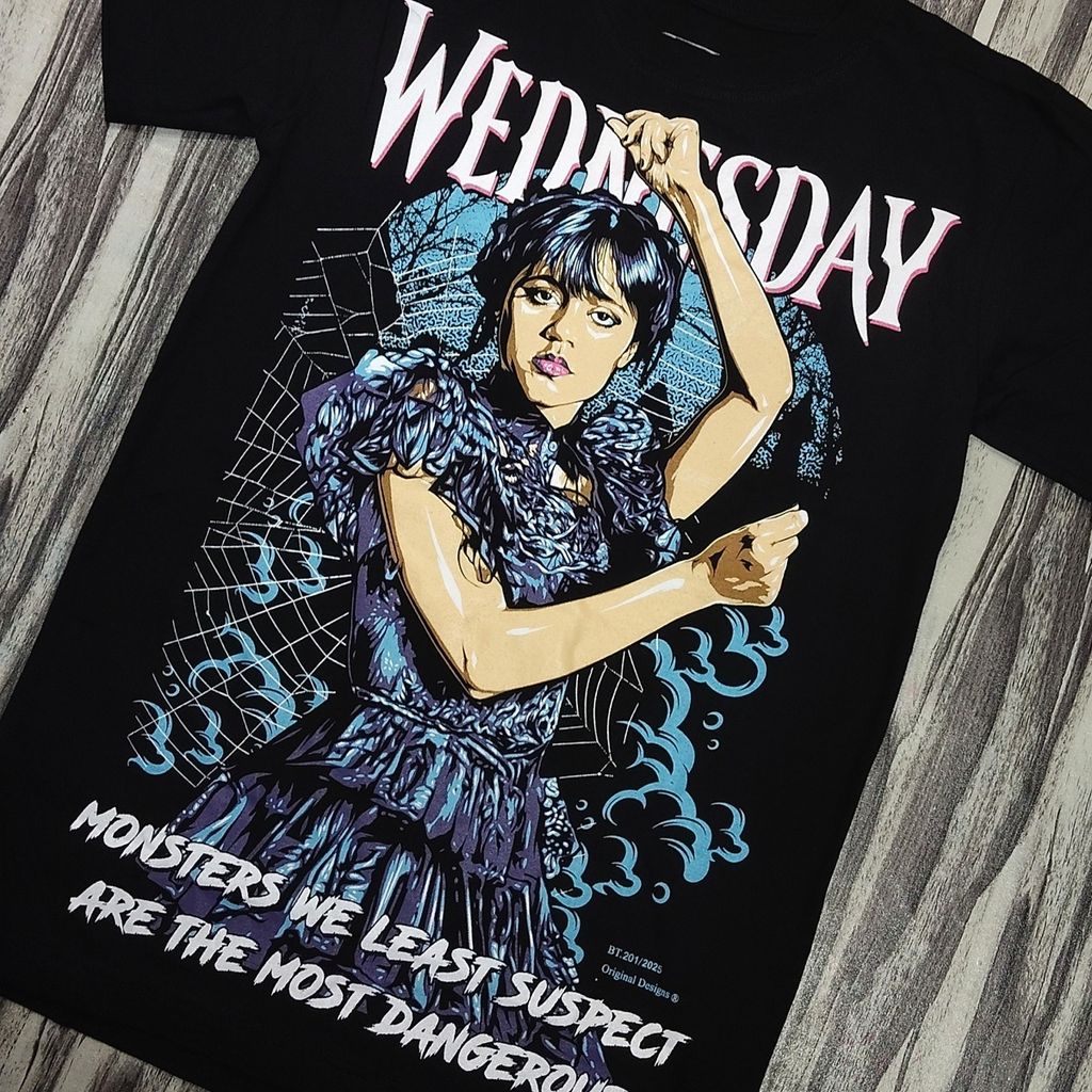 BT201 WEDNESDAY ADDAMS SUPERNATURAL COMEDY HORROR SPECIAL FANART COLLECTORS EDITION ORIGINAL BLACK TIMBER COTTON T-SHIRT