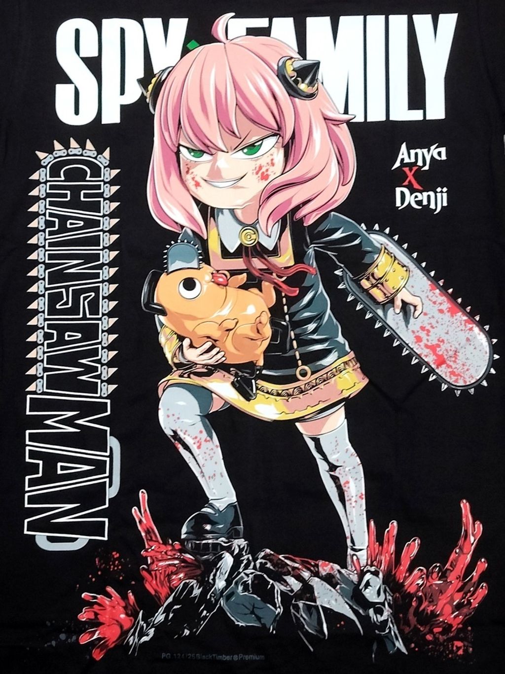 PG124 ANYA FORGER SPY X FAMILY DENJI CHAINSAW ANIME MOVIE EDITION ORIGINAL PREMIUM GRADE BLACK TIMBER COTTON T-SHIRT