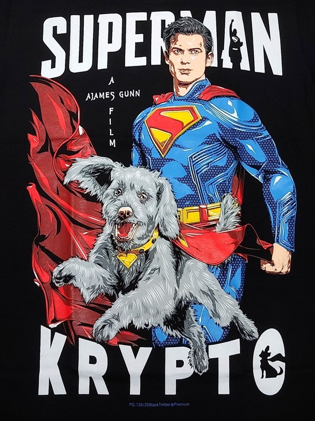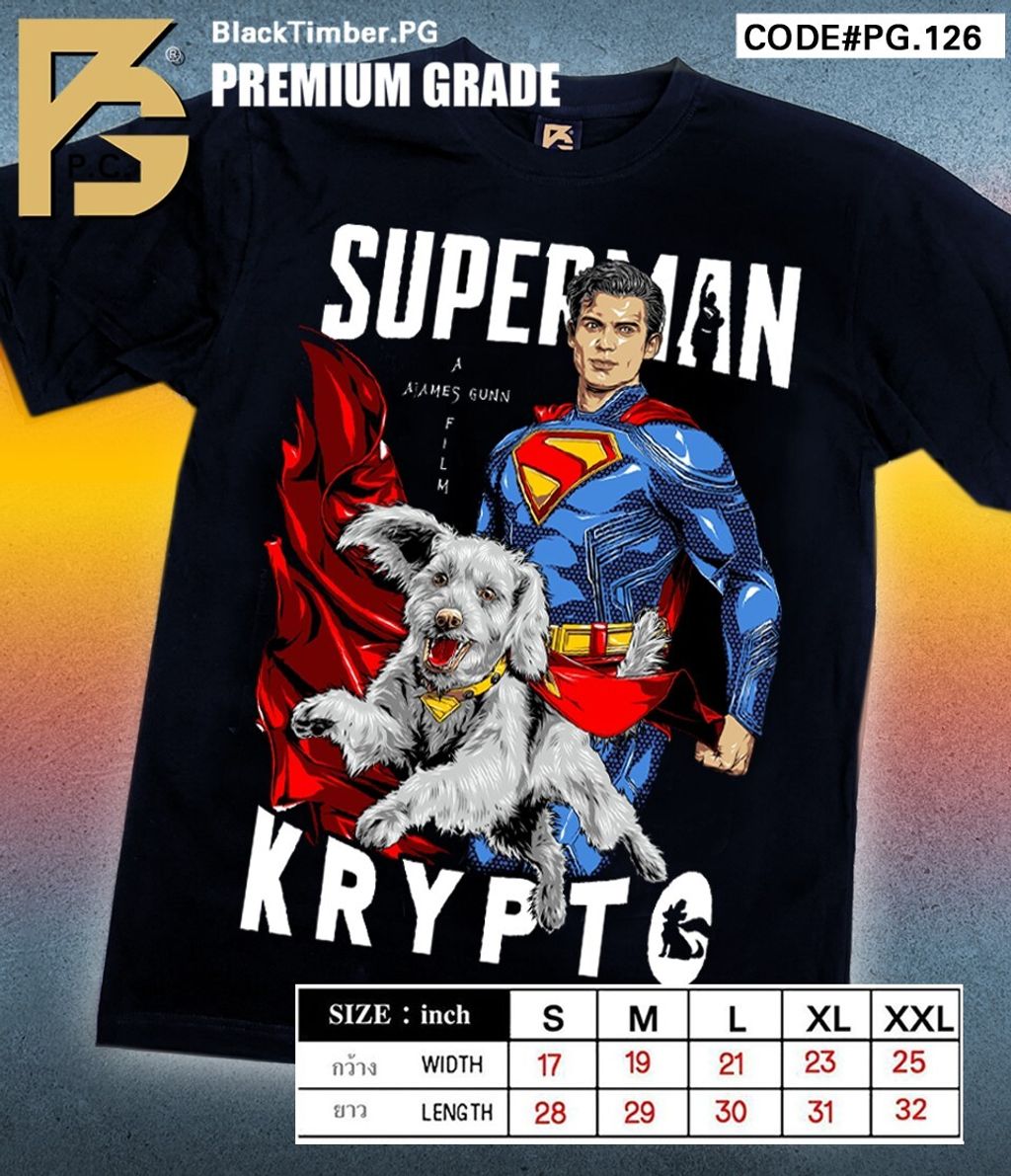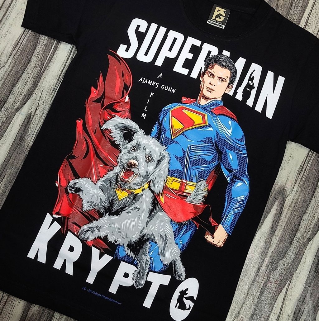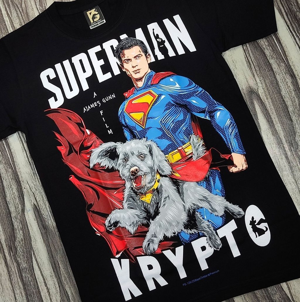 PG126 FANART SUPERHERO SUPERMAN KRYPTO DOG DC COMIC MOVIE COLLECTION ORIGINAL PREMIUM GRADE BLACK TIMBER COTTON T-SHIRT