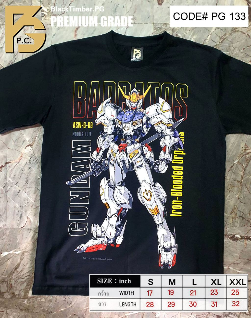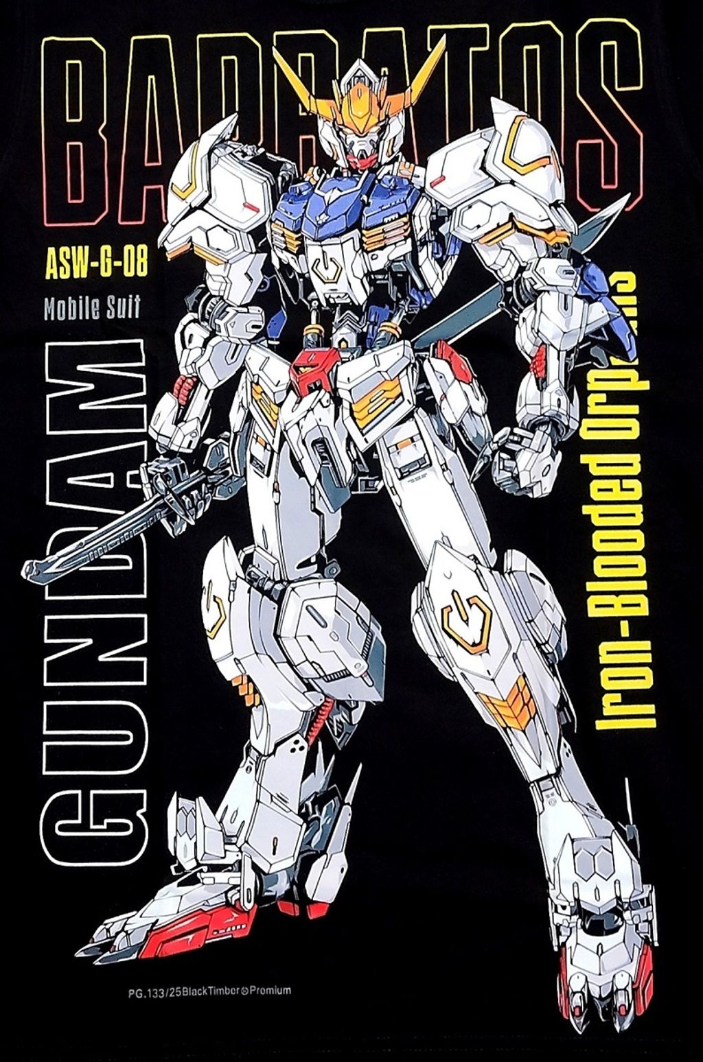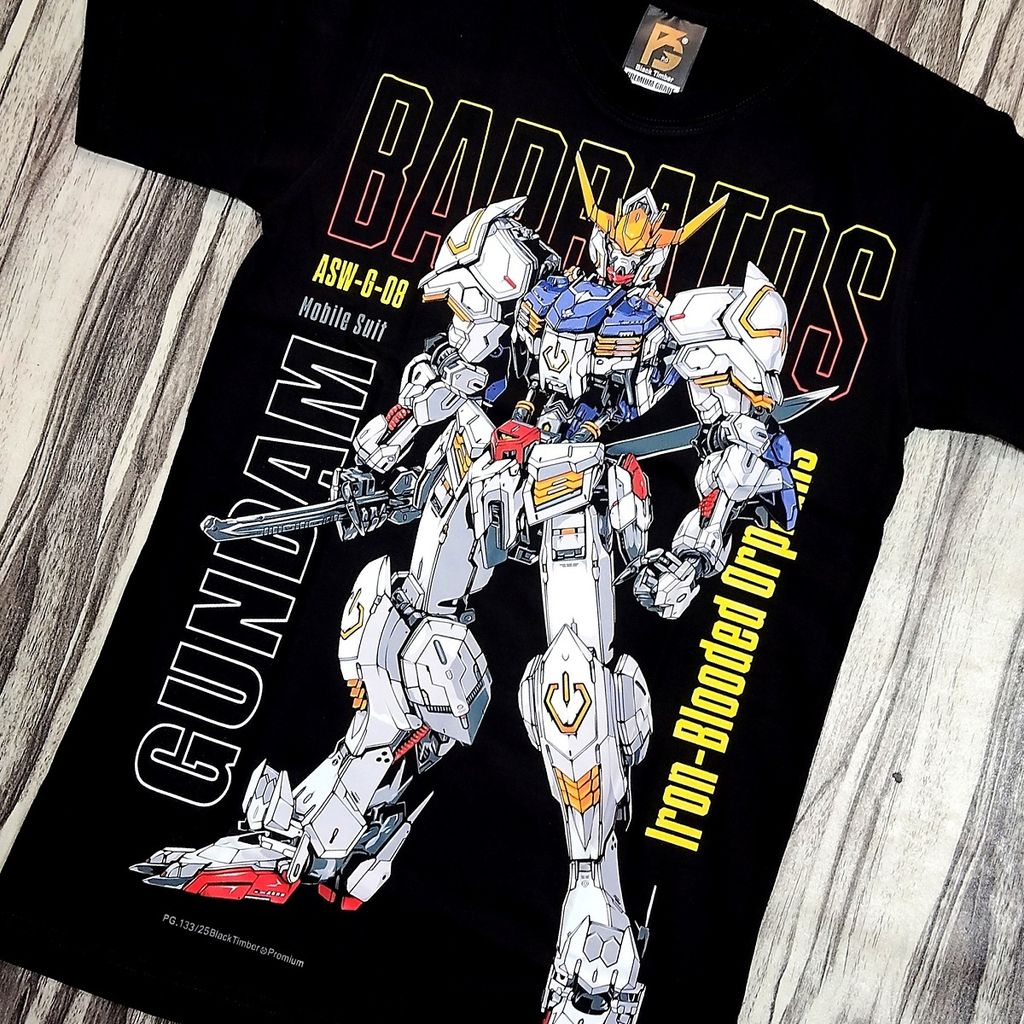 PG133 GUNDAM IRON-BLOODED ORPHANS ASW-G-08 BARBATOS LUPUS ANIME MECH ORIGINAL PREMIUM GRADE BLACK TIMBER COTTON T-SHIRT