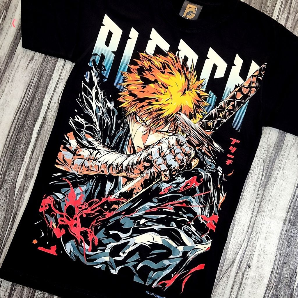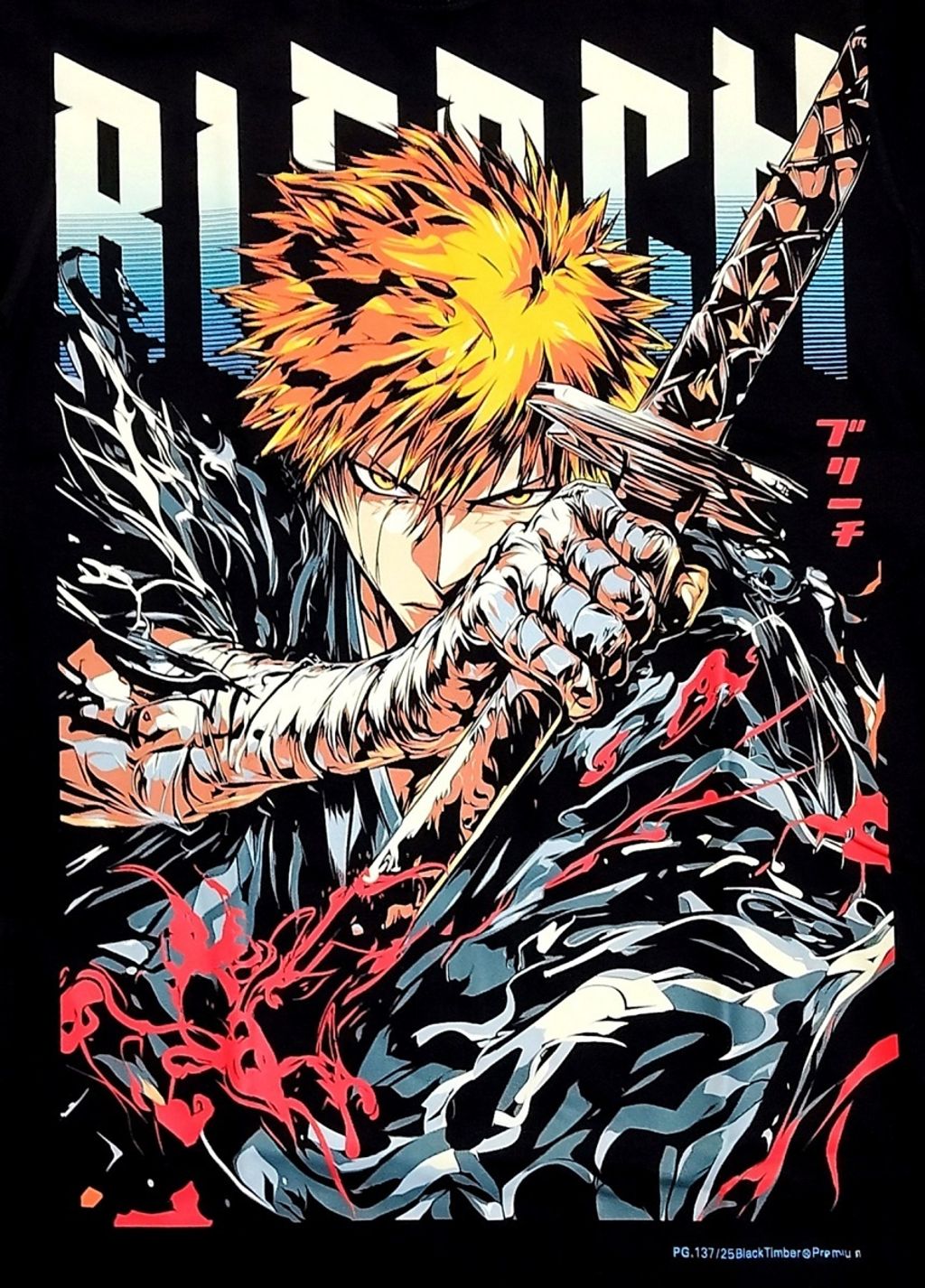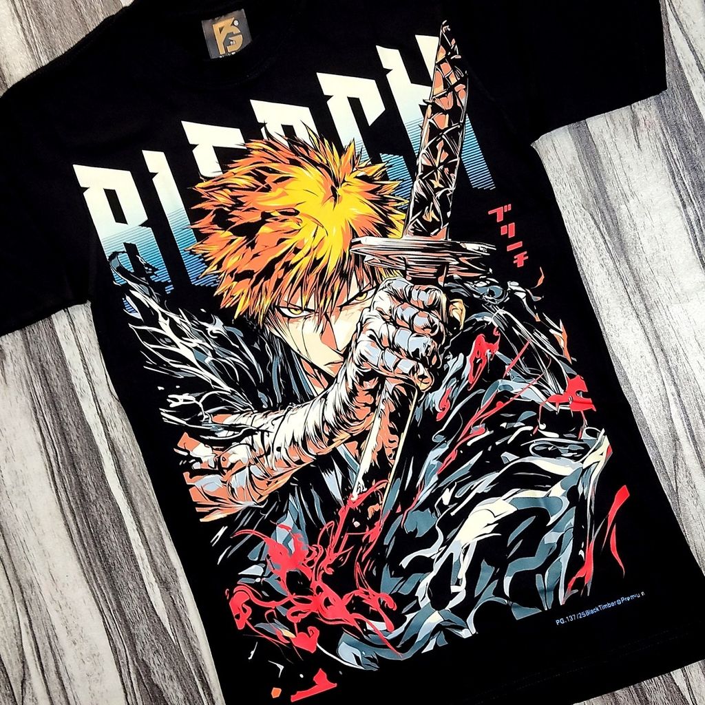 PG137 BLEACH ICHIGO KUROSAKI LIMITED MANGA ANIME COLLECTION ORIGINAL PREMIUM GRADE BLACK TIMBER COTTON T-SHIRT