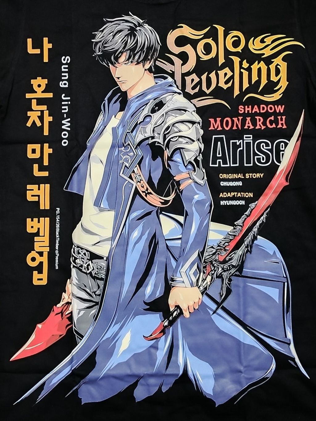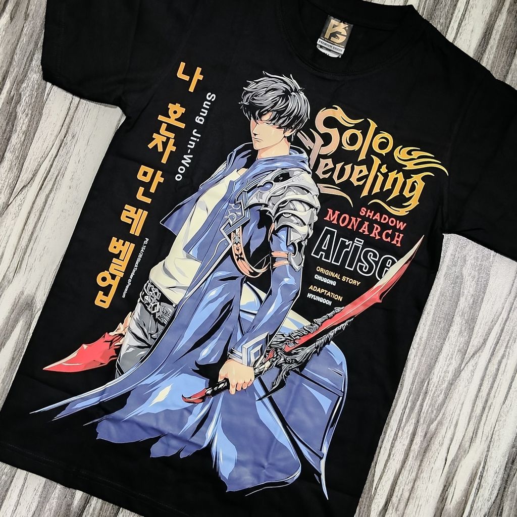 PG154 SOLO LEVELING SHADOW MONARCH ARISE SUNG JIN WOO ANIME MANGA ORIGINAL PREMIUM GRADE BLACK TIMBER COTTON T-SHIRT