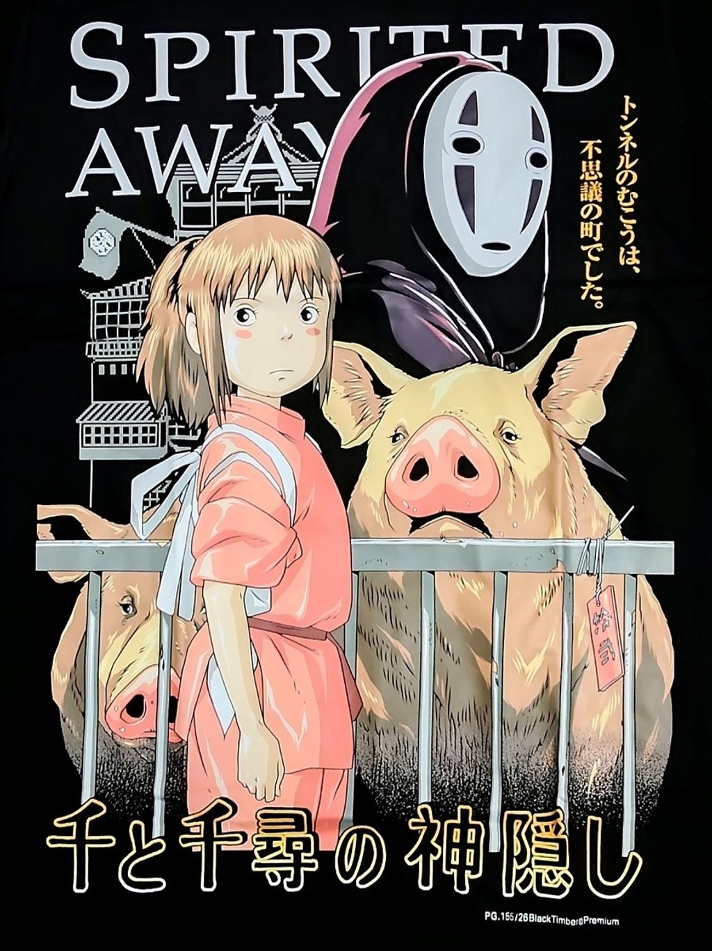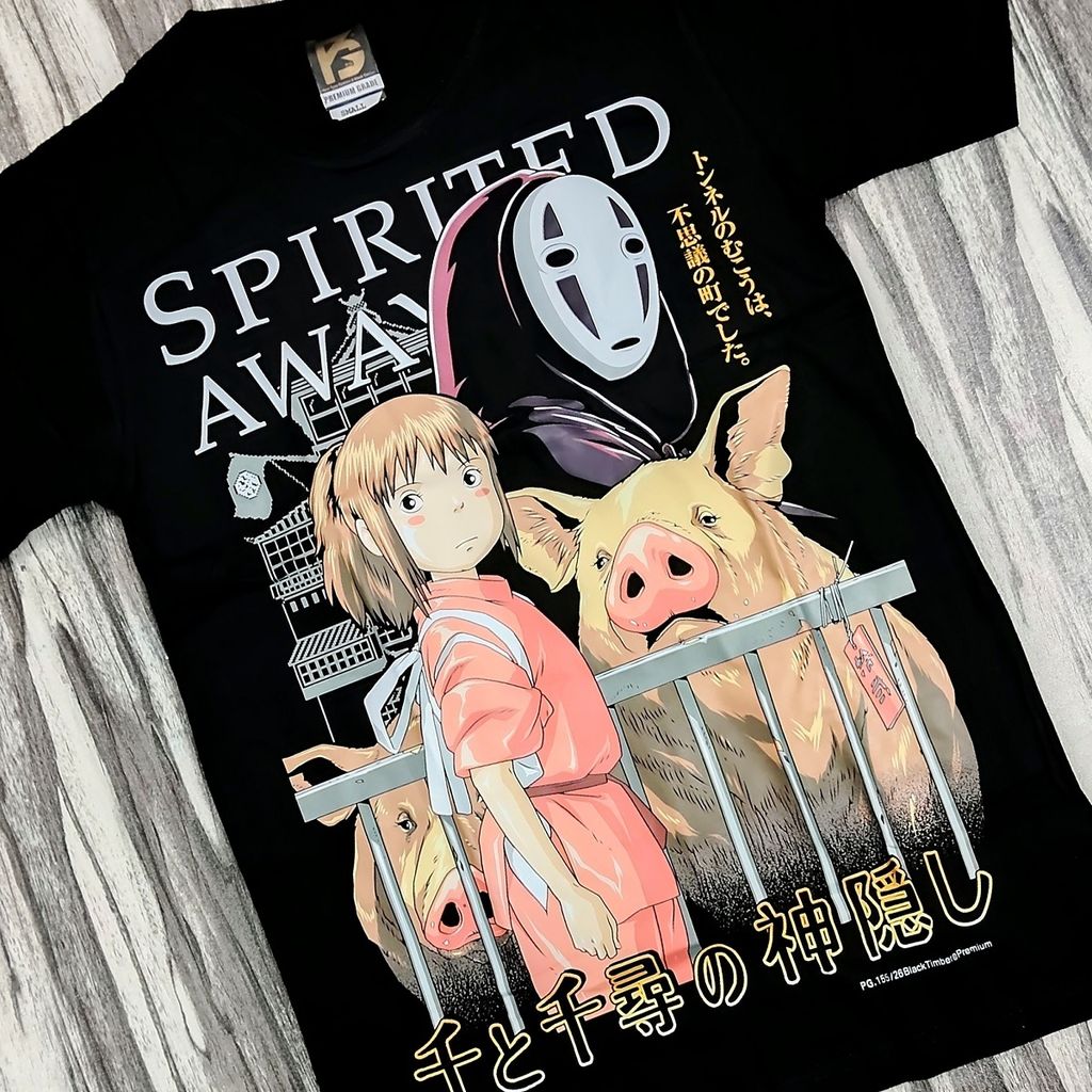 PG155 SPIRITED AWAY LIMITED COLLECTABLE ANIMATED FANTASY ANIME FILM ORIGINAL PREMIUM GRADE BLACK TIMBER COTTON T-SHIRT