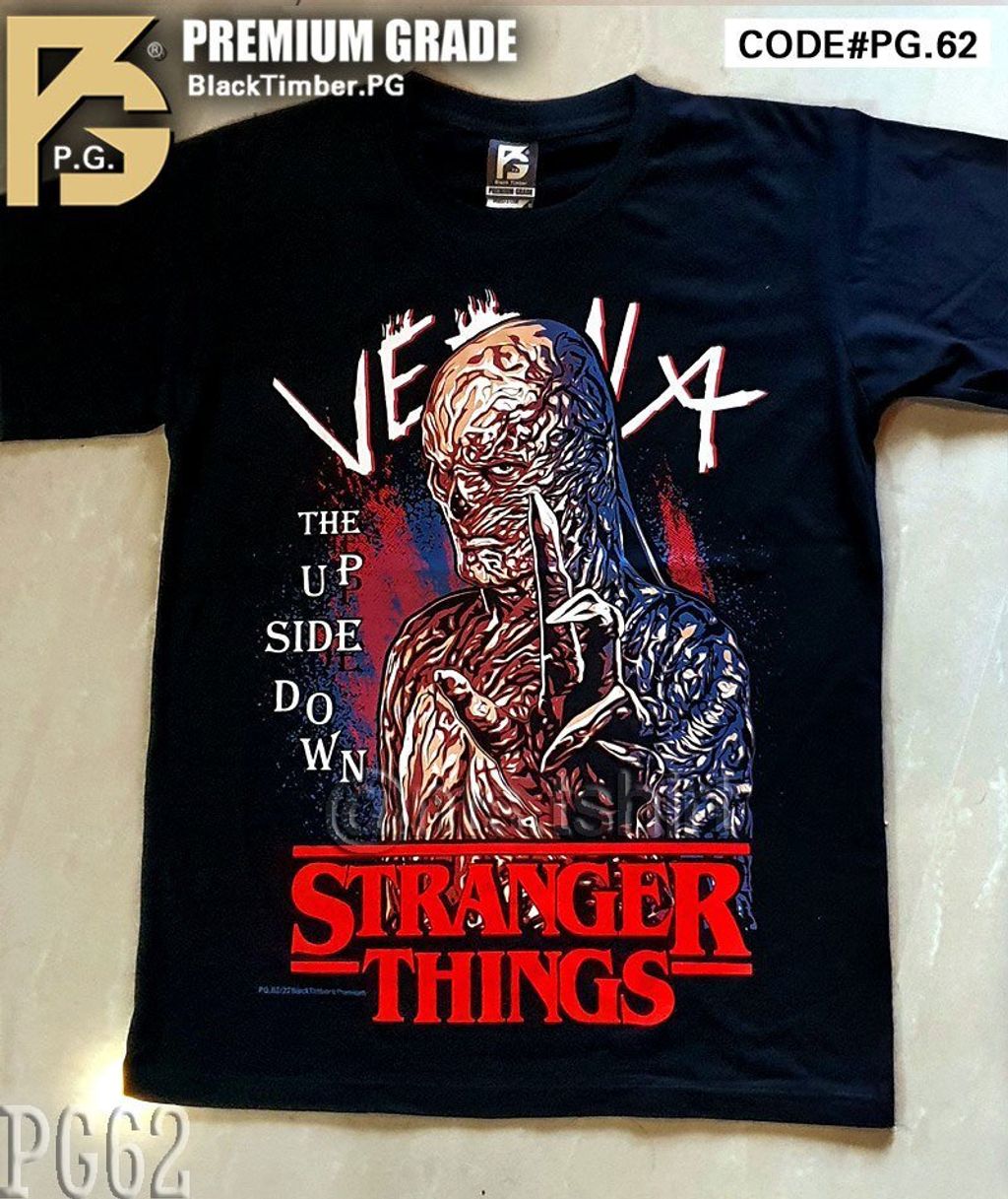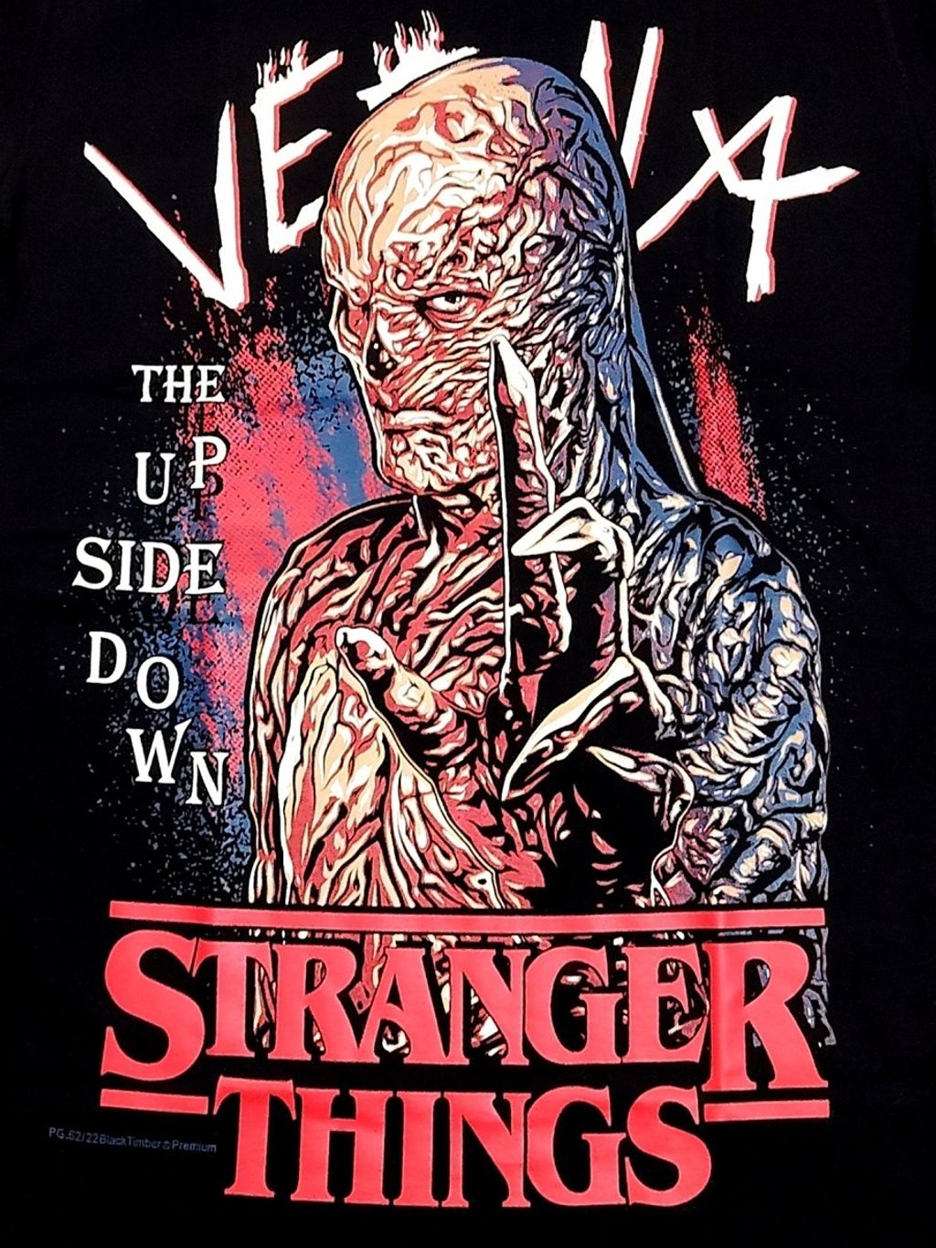 PG62 STRANGER THINGS VECNA THE UP SIDE DOWN HORROR MOVIE SERIES ORIGINAL PREMIUM GRADE BLACK TIMBER COTTON T-SHIRT