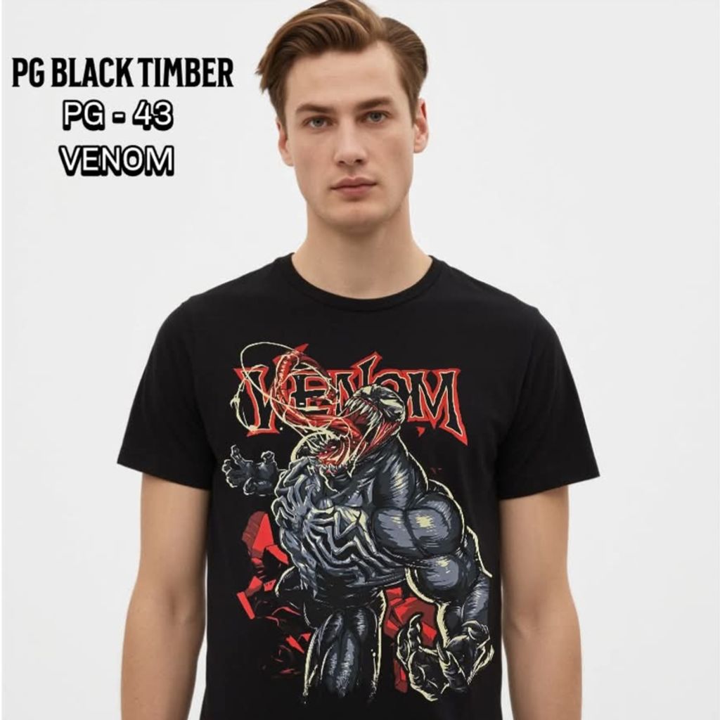 PG43 VENOM DARK SPIDERMAN EDDIE BROCK MARVEL COMIC MOVIE COLLECTION ORIGINAL PREMIUM GRADE BLACK TIMBER COTTON T-SHIRT