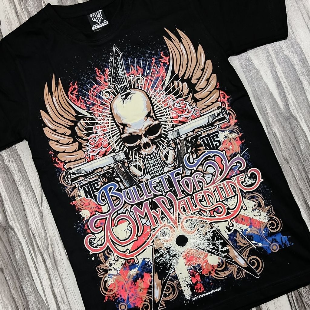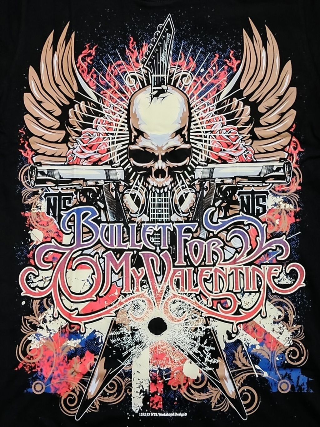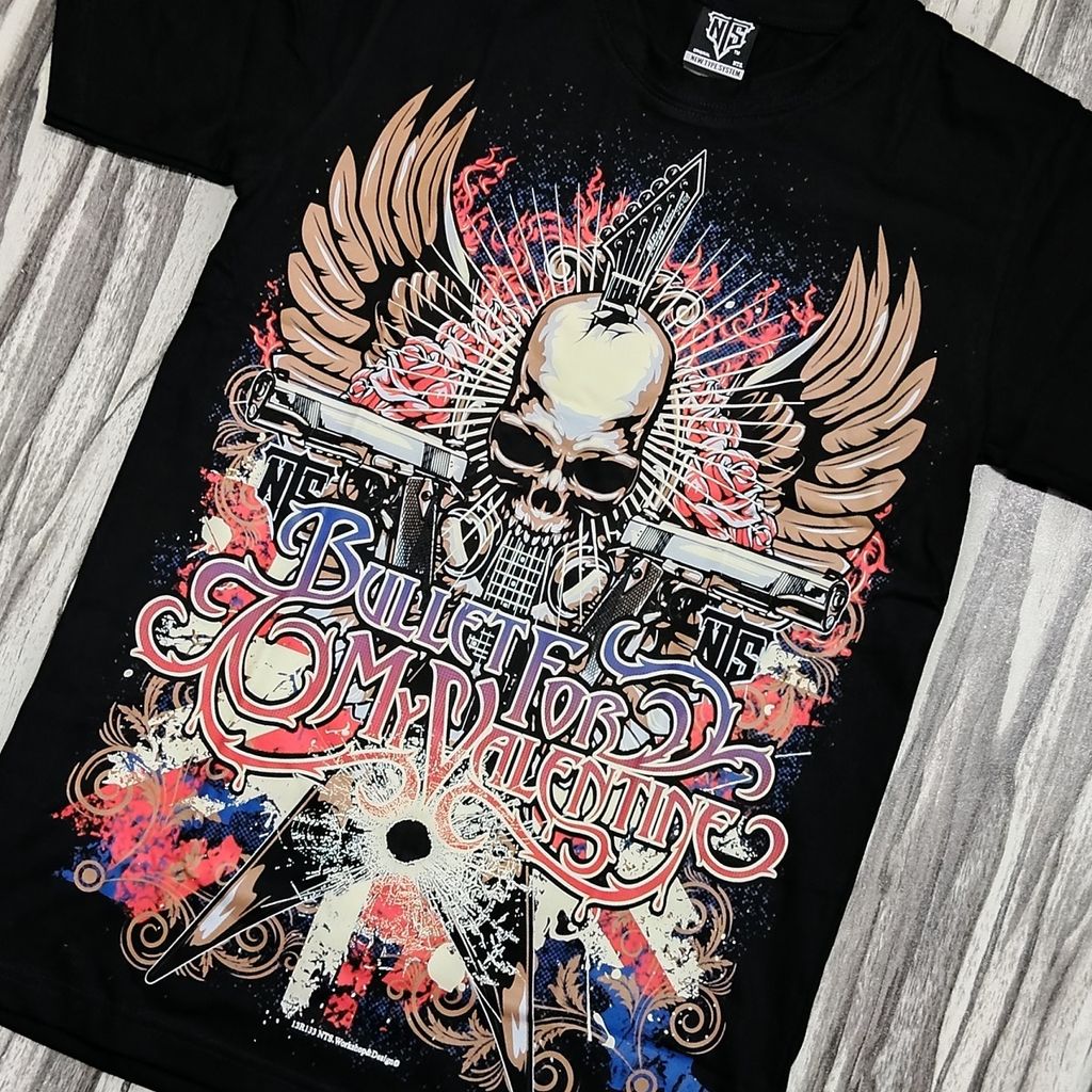 NTS133 BFMV BULLET FOR MY VALENTINE HEAVY METAL ROCK BAND GUNS & SKULL COVER NTS ORIGINAL NEW TYPE SYSTEM COTTON T-SHIRT